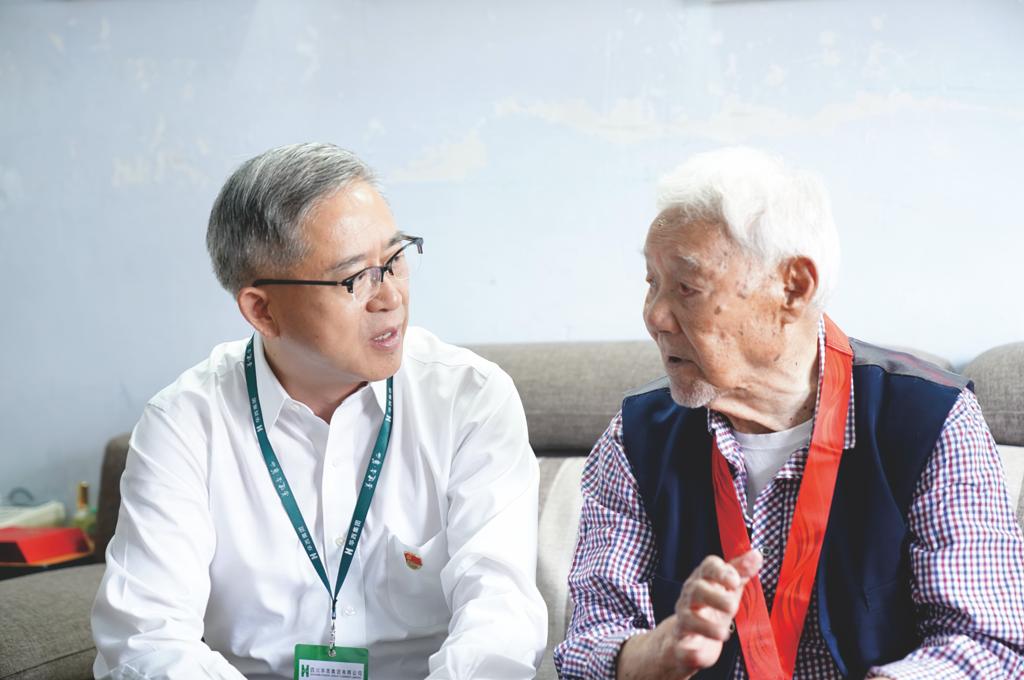 杨斌看望慰问107岁老红军赵世新,并颁发“光荣在党50年”纪念章